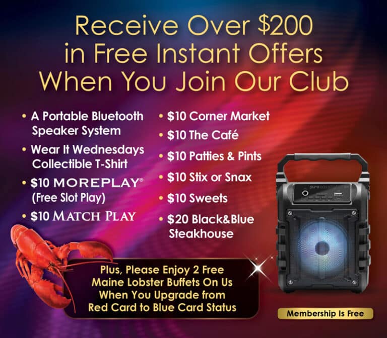 - Plus, two free Maine Lobster Buffets when you upgrade from Red Card to Blue Card status